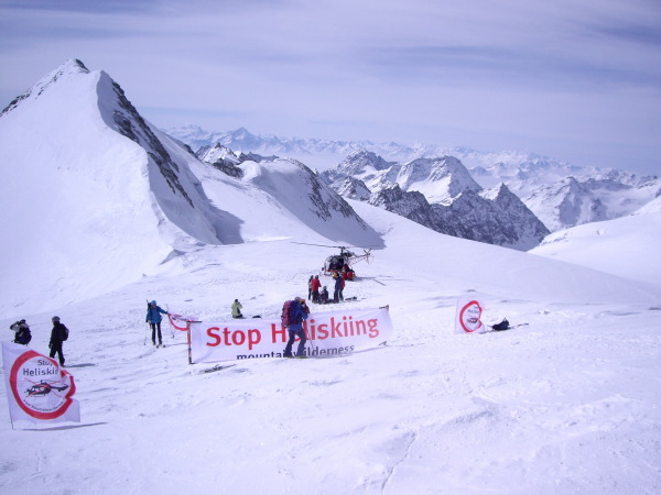 И heliskier'ы все склоны укатывают. Надо было взять с собой транспарантик -- вот такой.